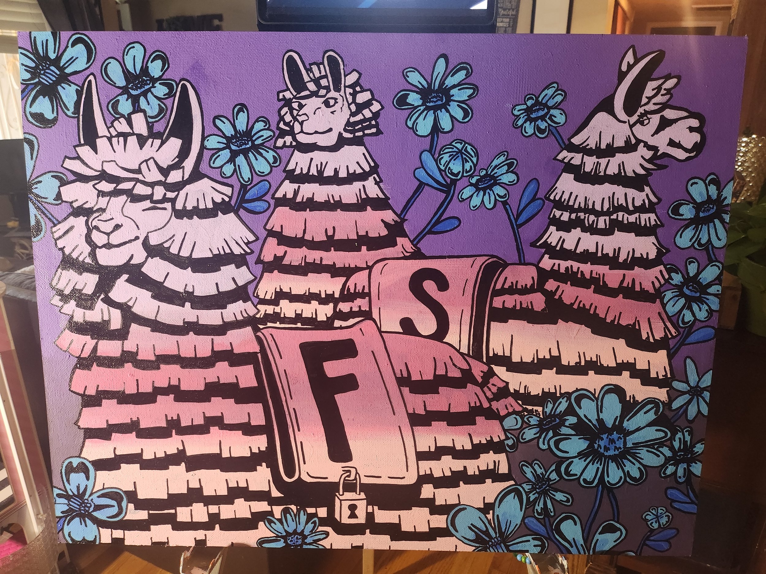 Hand painted Wooden stove top cover with extra sign to hang when not in use